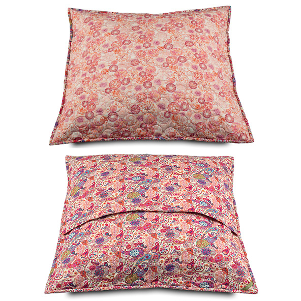 We take a length and more of Liberty fabric and follow the exact pattern to produce any width and size of reversible bedspread. The high-quality stitching is the hallmark of a superb reliable product. The edging on all our bedspreads and cushions is finished by hand to give them a distinctive finish.
